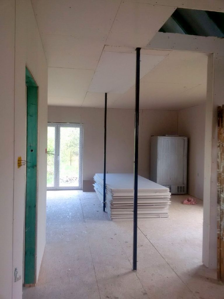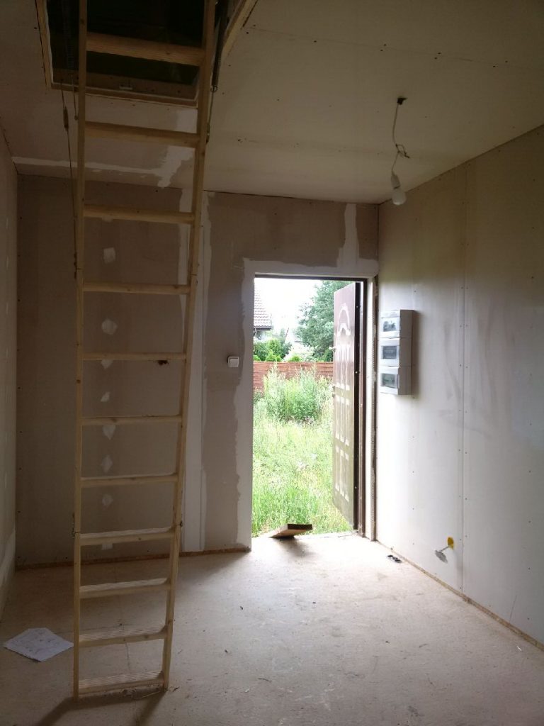 Dom całoroczny piętrowy 106 m na działce 1350 m w Złotokłosie. (odległość: 15 km od Piaseczna, 15 km od Janek) zbudowany w technologii modułowej (konstrukcja stalowo drewniana na betonowych ławach). Ocieplony. Położony 100m od drogi asfaltowej, w 2 linii zabudowy. Działka o powierzchni 1350 m2, ogrodzona, z bramą wjazdową. Media: gaz (w domu), prąd (w domu), wodociąg miejski przy działce. Otoczenie domy jednorodzinne. Stan wykończenia: dom ocieplony, nieotynkowany, z oknami PCV, drzwiami zewnętrznymi, dach – blachodachówka, są zainstalowane kaloryfery. Parter: sień, salon z aneksem kuchennym, pokój, łazienka, Piętro: planowane są 2 pokoje i garderoba Dom sprzedawany w stanie tj na zdjęciach. Cicho, spokojnie, szybki dojazd do Piaseczna, i Warszawy.